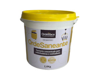 15 minutos antes de transferir o leite para o resfriador que já está limpo, também é necessário efetuar uma limpeza.Em recipiente apropriado prepare uma solução de água quente a 60ºC com 0,5 a 3 gramas de ORDESANEANTE por litro e enxágue a tampa superior, paredes e pá agitadora.